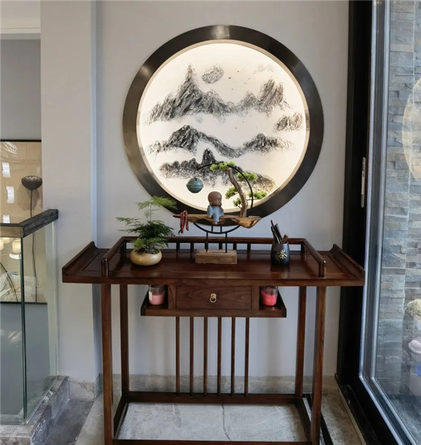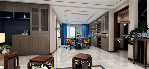 。除了保留中式的韻味外,還加了大理石、燈帶等材料,使空間包含現(xiàn)代生活氣息。新中式風格是一種既繼承了中國古典園林的基本元素及造園手法,又融合了現(xiàn)代簡約的幾何圖案及線條的設計風格