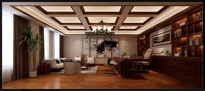 本案為4層,辦公與住宅一體。在空間裝飾上,多采用簡(jiǎn)潔硬朗的直線條。直線裝飾在空間中的使用,不僅反映出現(xiàn)代人追求簡(jiǎn)單生活的居住要求,更迎合了中式家具追求內(nèi)斂、質(zhì)樸的設(shè)計(jì)風(fēng)格,使“新中式”更加實(shí)用、更富現(xiàn)代感。