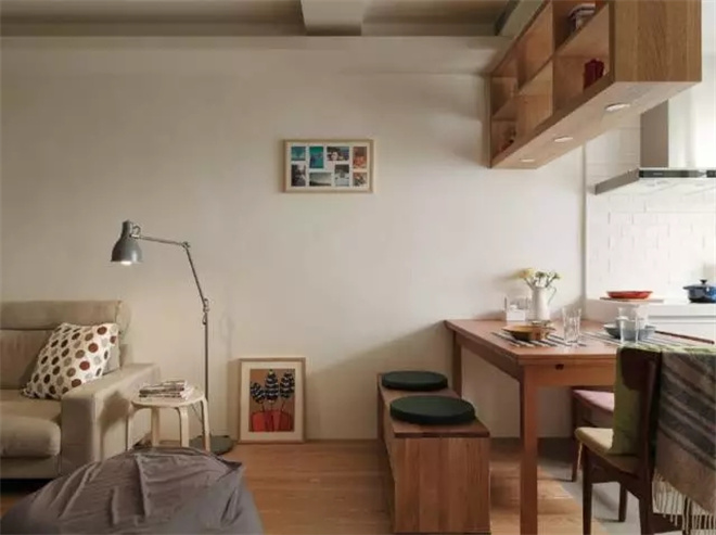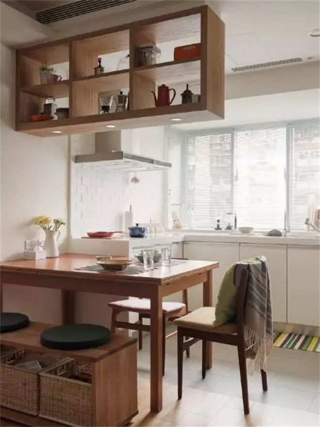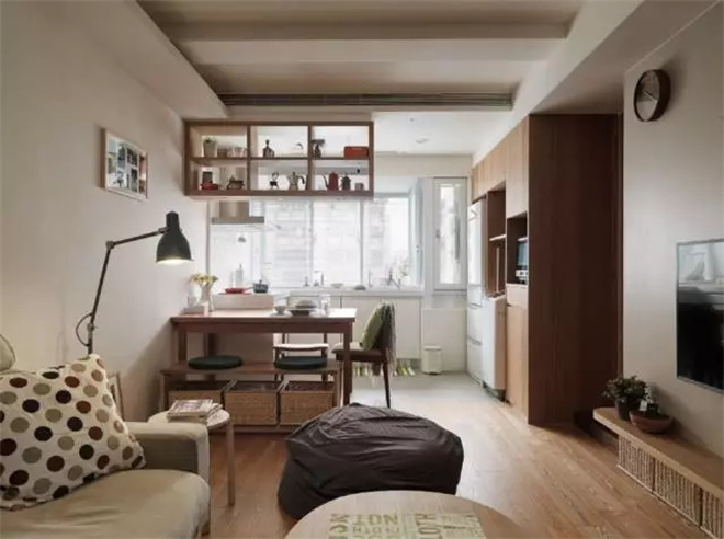 木質(zhì)的柜子更具有生活的氣息,旁邊就是通往臥室的門,推拉式的木門