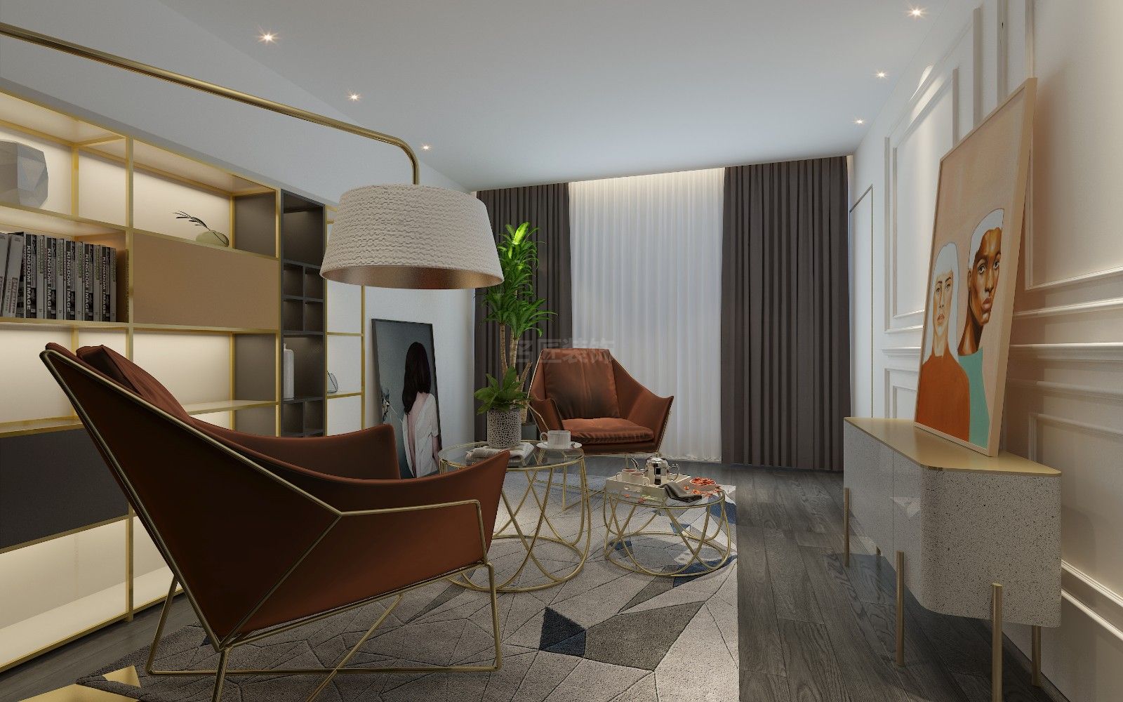 輕奢風(fēng)格100平米以下三居室