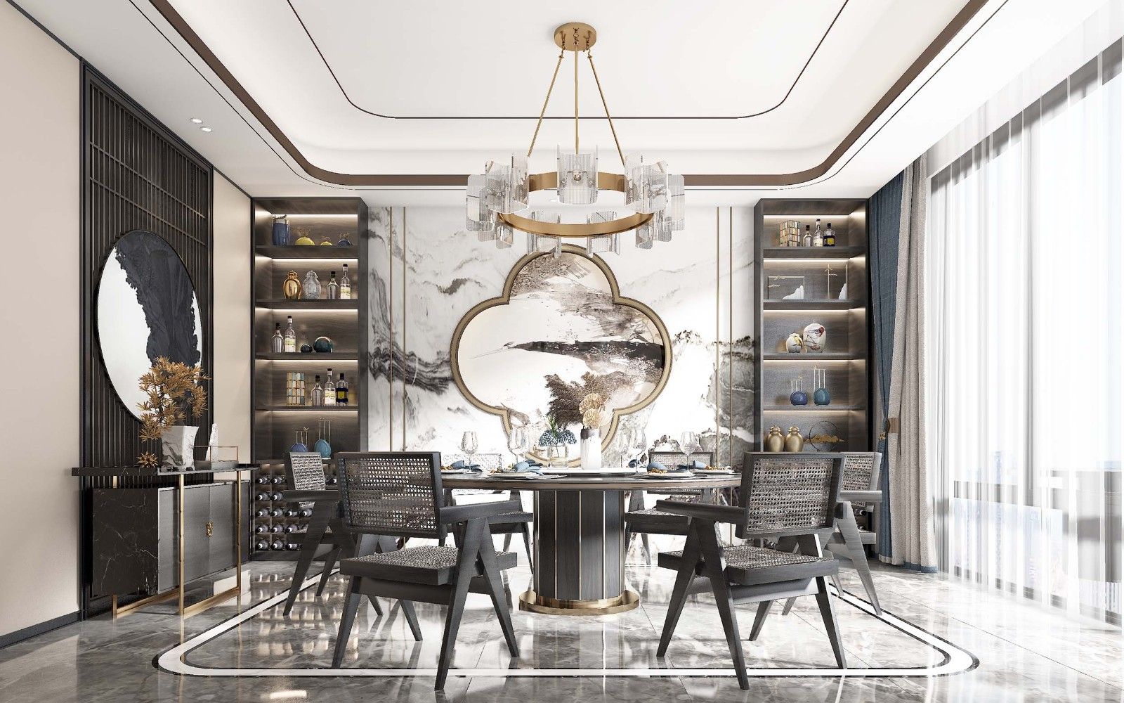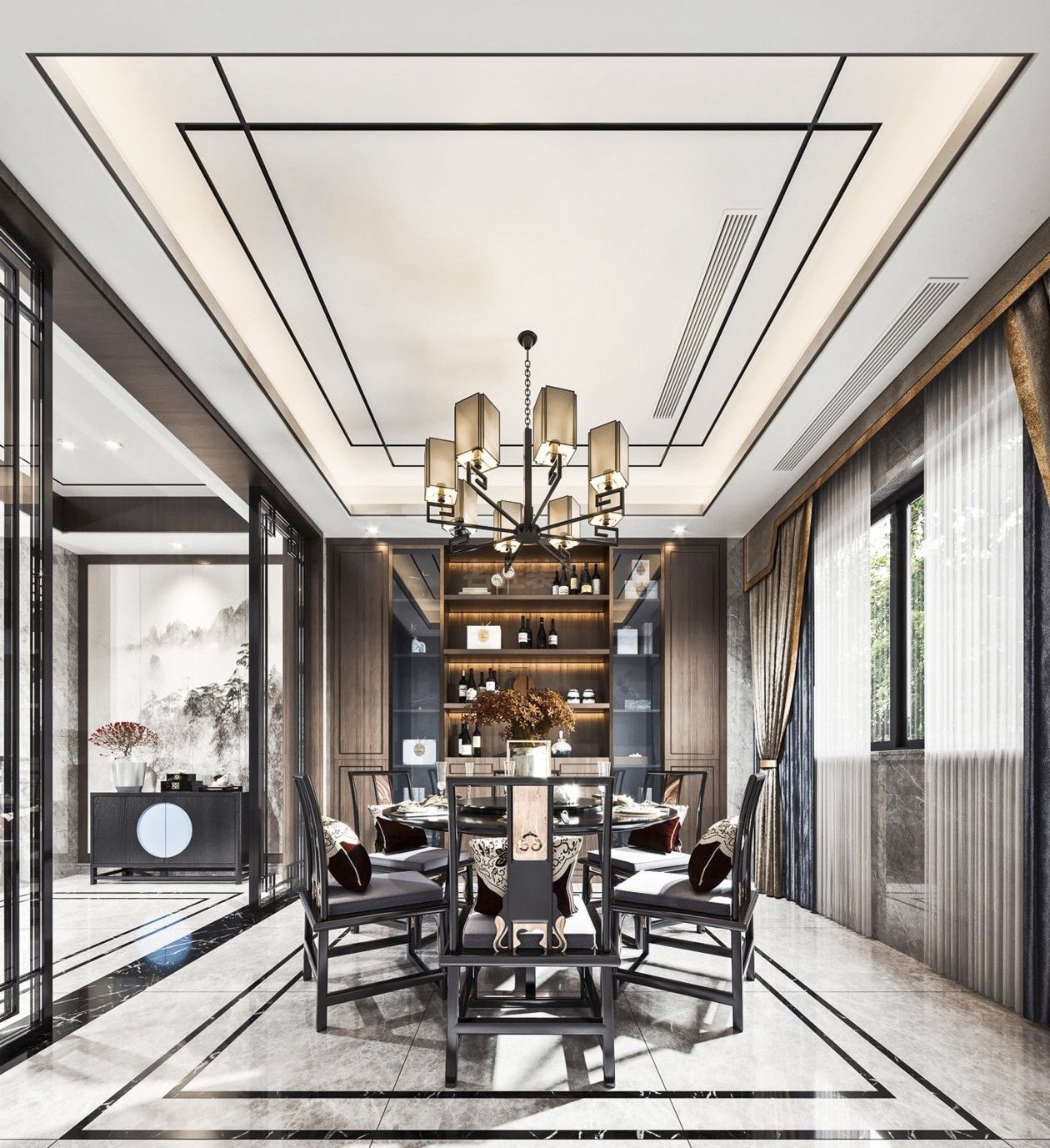 江門碧桂園別墅新中式風(fēng)格裝修效果圖