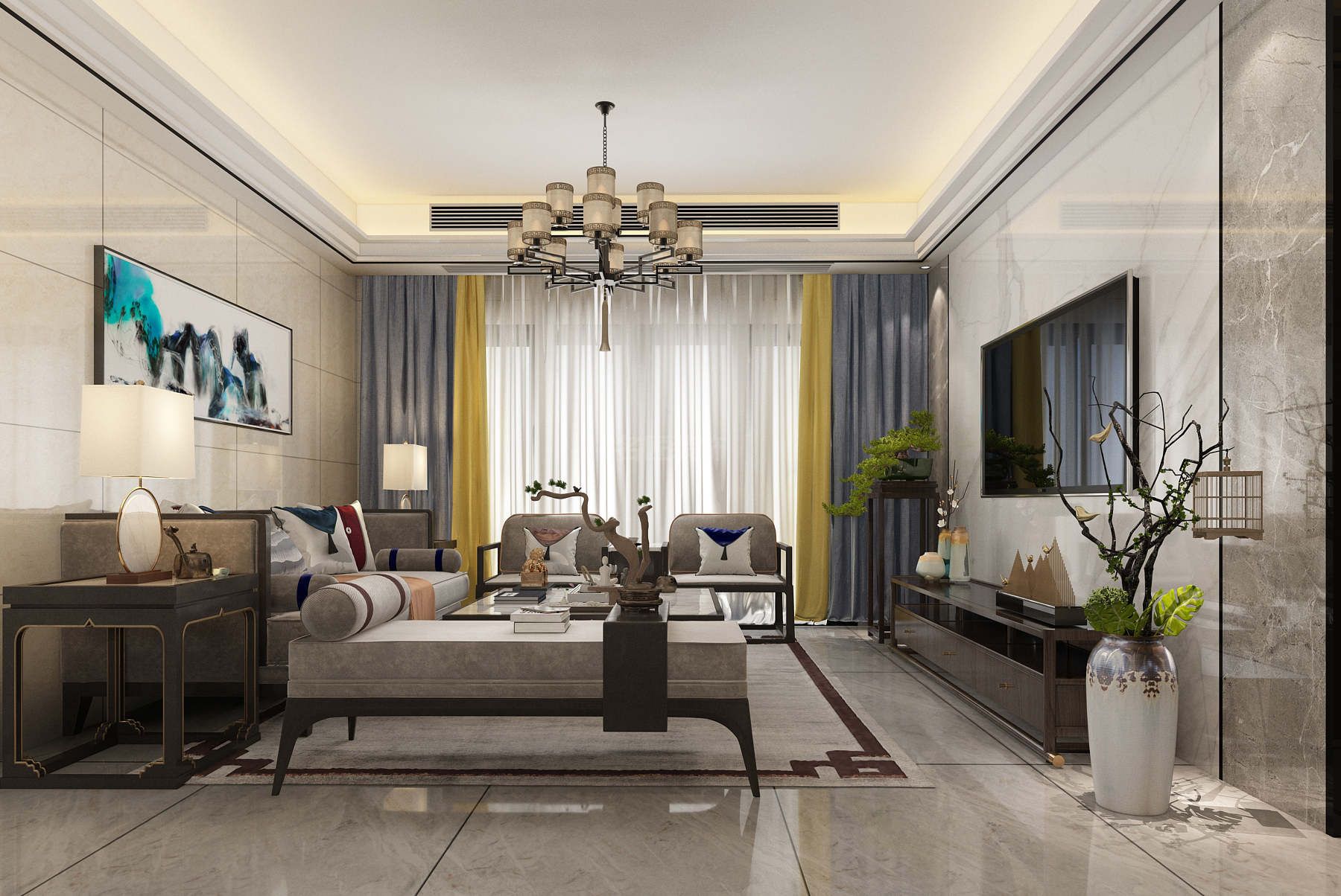 廣州101-200平米新中式風(fēng)格室內(nèi)設(shè)計(jì)效果圖