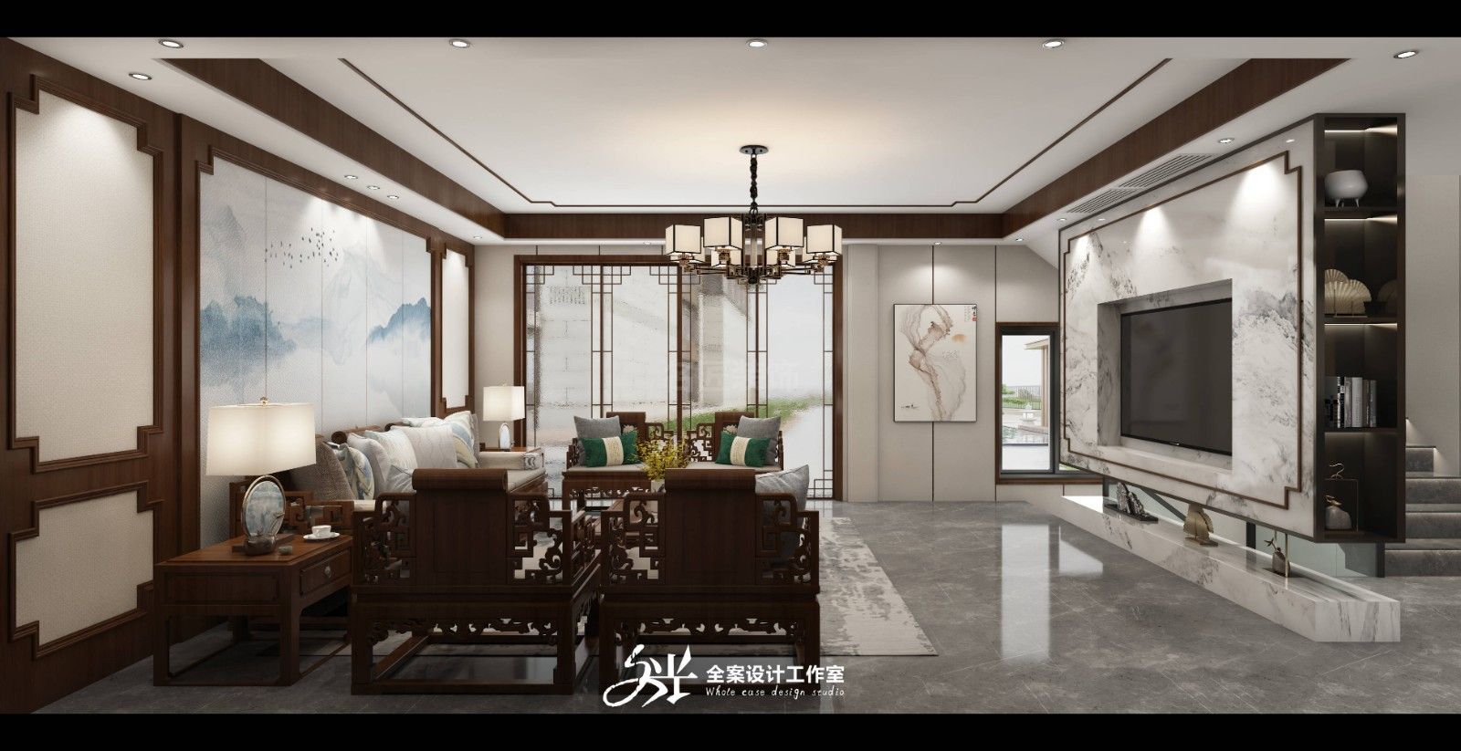 惠州201-300平米新中式風(fēng)格景安花園家裝設(shè)計(jì)效果圖