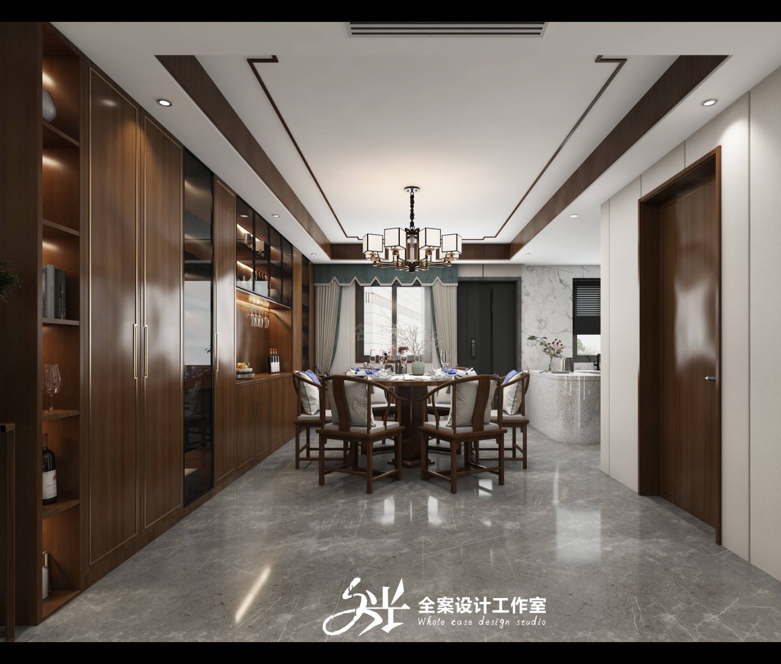 涼山彝族自治州萬(wàn)科別墅新中式風(fēng)格裝修效果圖