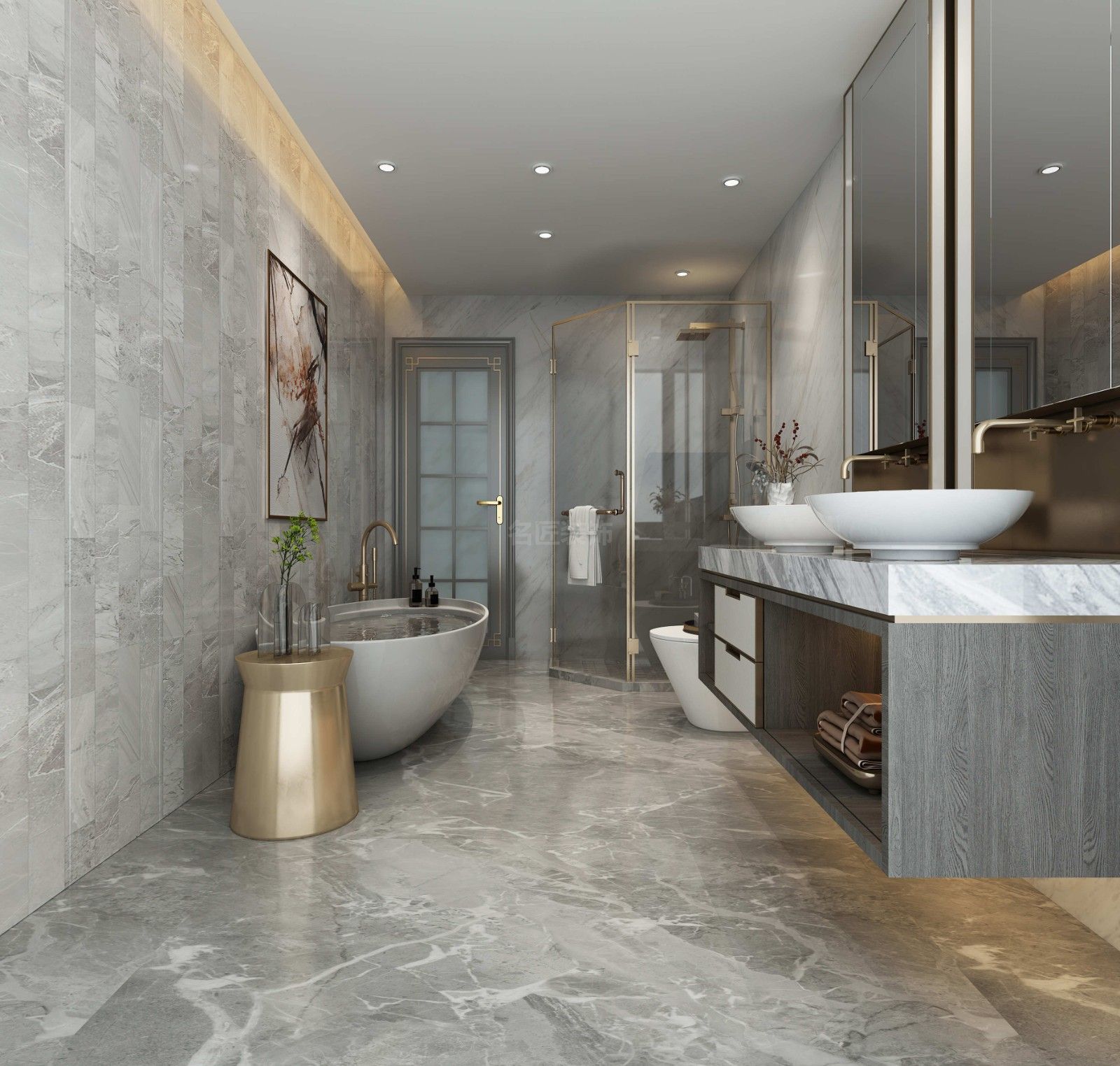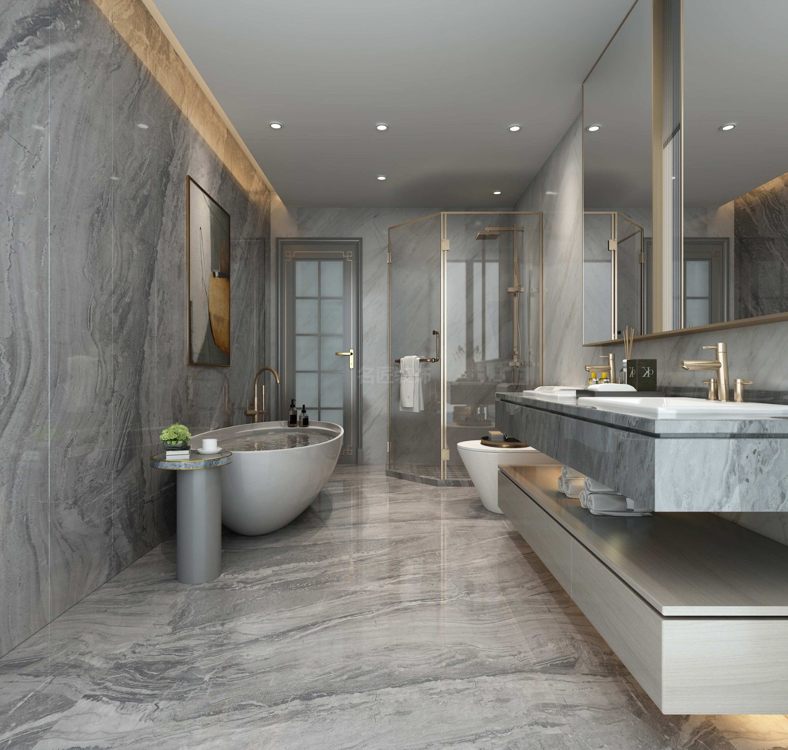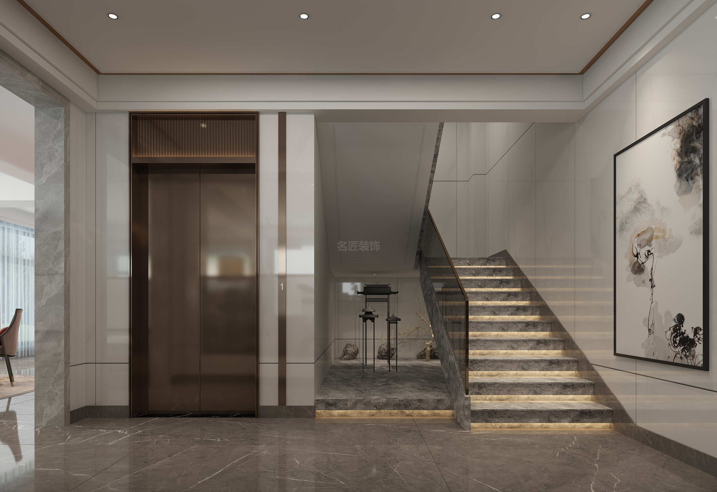 ??陂L怡花園別墅新中式風格裝修效果圖