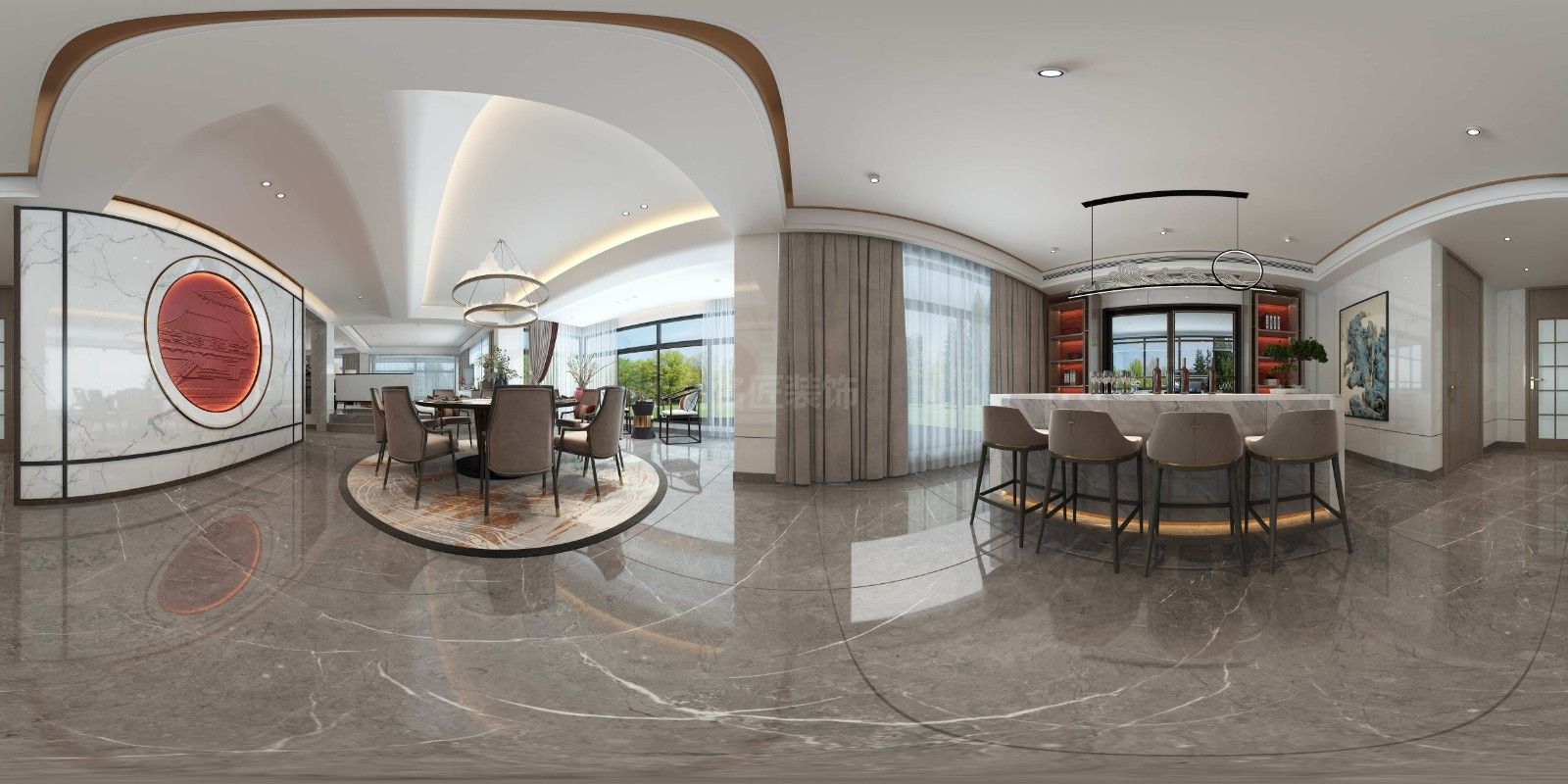 海口長怡花園別墅新中式風格裝修效果圖