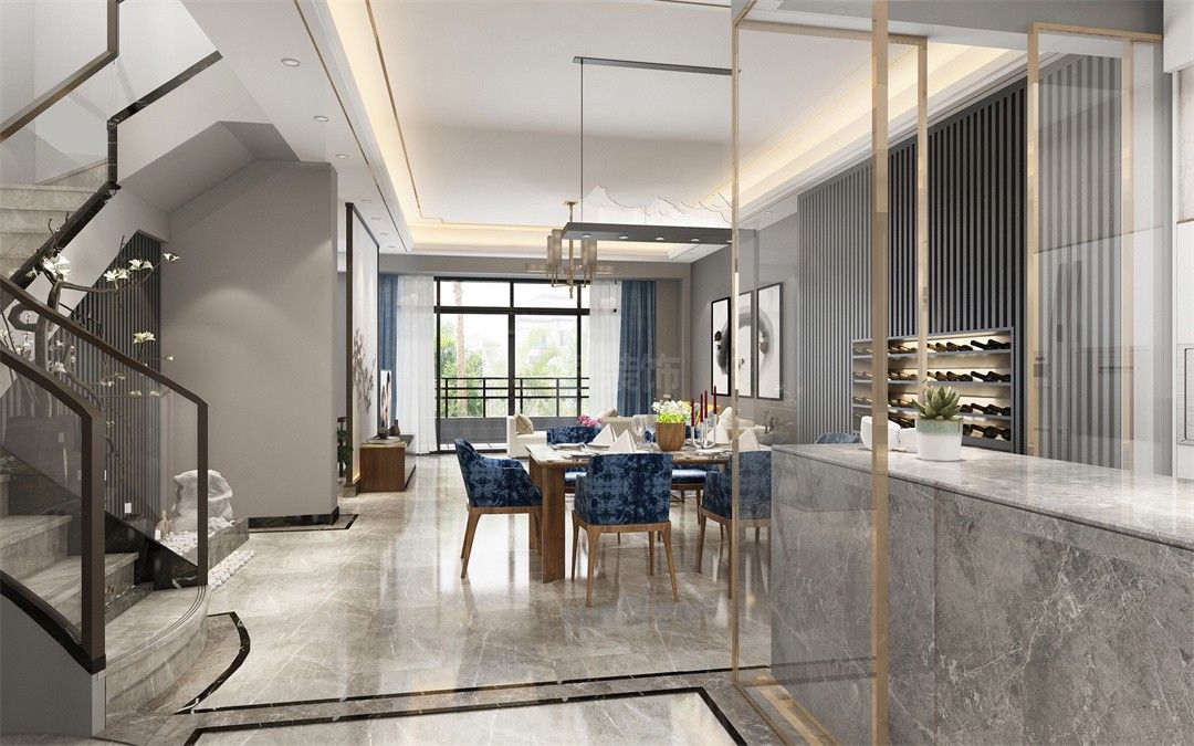 中山錦繡海灣城別墅新中式風(fēng)格裝修效果圖