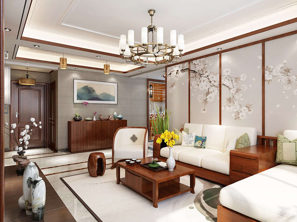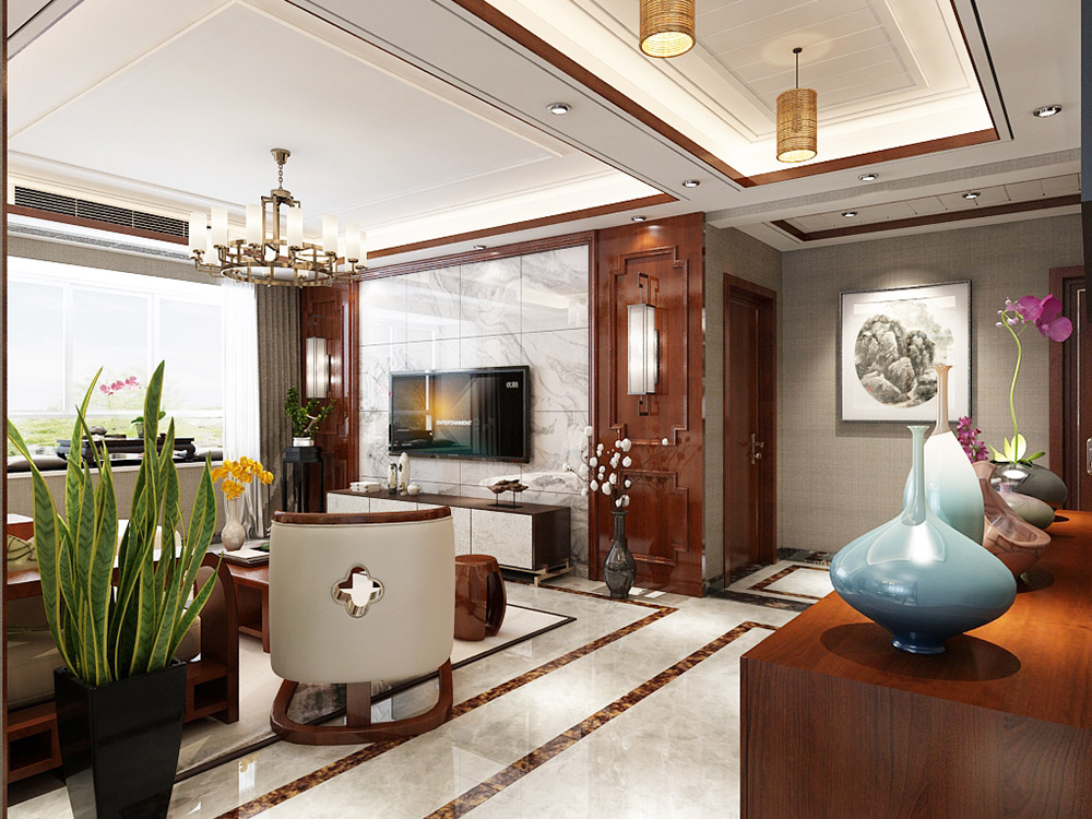 泰州榕湖世家三居新中式風(fēng)格裝修效果圖