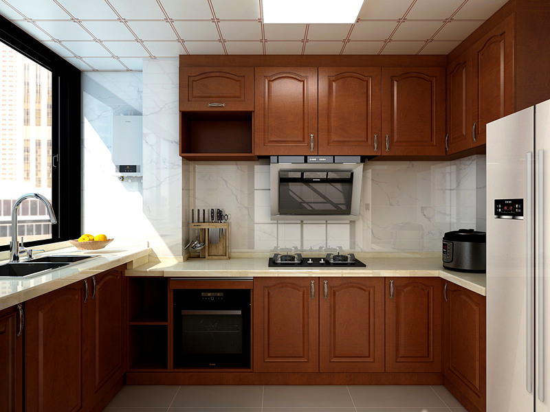 2、我們還可以根據(jù)廚房的空間大小選擇合適的廚房顏色,如果廚房空間過(guò)高,那么可以采用深色調(diào),讓空間變得狹小和厚重,如果廚房的空間太小,則可以采用明亮的淡色調(diào),讓廚房空間在視覺(jué)上變得更急寬敞。