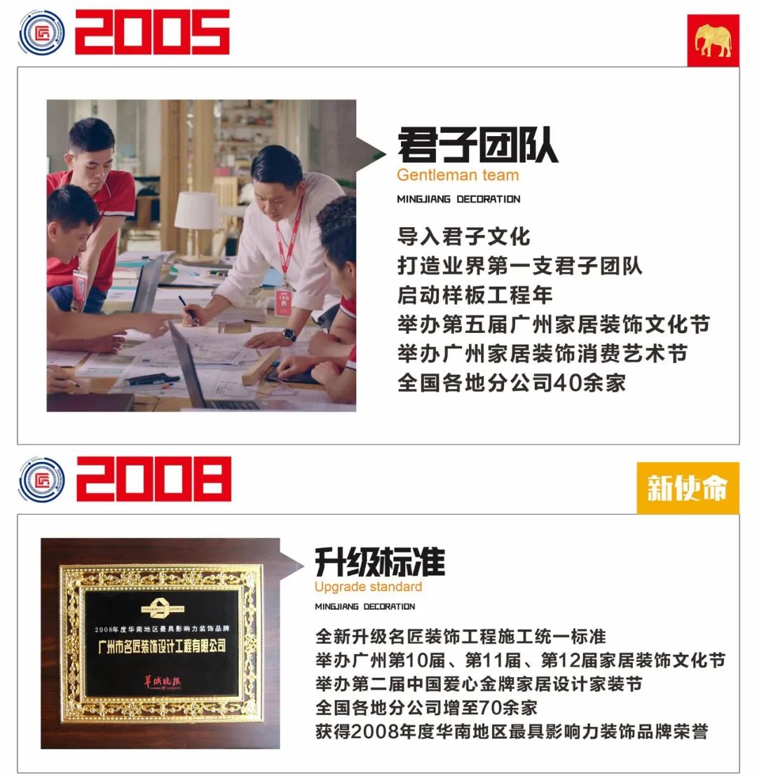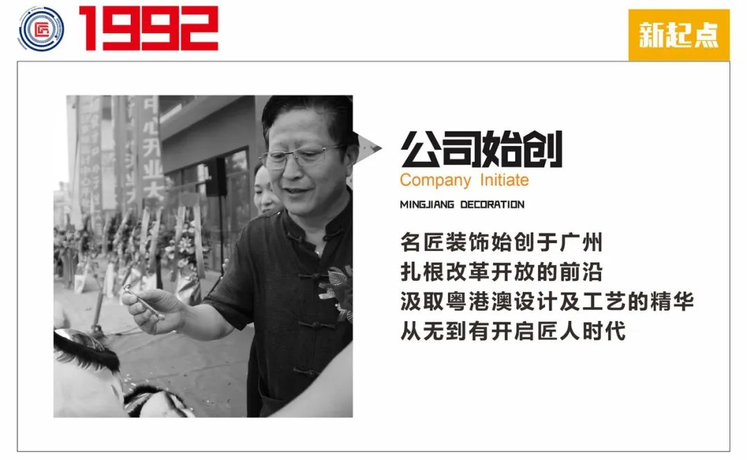 名匠裝飾1992年創(chuàng)始于廣州,堅持品牌化,系統(tǒng)化,和標準化的發(fā)展戰(zhàn)略,立足于廣州走向全國,進軍世界。發(fā)展到至今30年輝煌歷程。