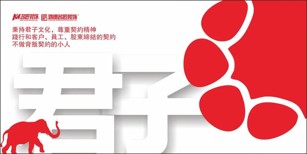 2005年,名匠裝飾創(chuàng)始人,集團董事長溫浙濤先生為名匠裝飾導入君子文化,他說:“做人做事,要有君子心態(tài)”。30年來君子文化深入名匠人的骨髓,名匠裝飾以打造業(yè)界第一個君子團隊為榮。