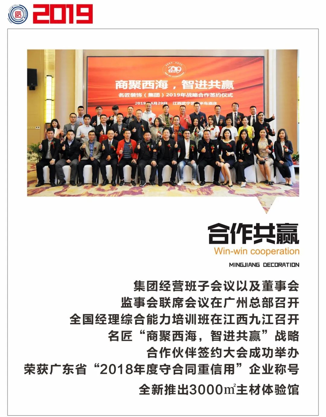 2007年,溫浙濤先生將幸福文化注入名匠企業(yè)文化中,將員工的幸福指數拔高到企業(yè)文化高度,將客戶的幸福指數作為服務客戶的文化信條。他說:“只要名匠開著門做生意,幸福這個概念,就要堅持下去。